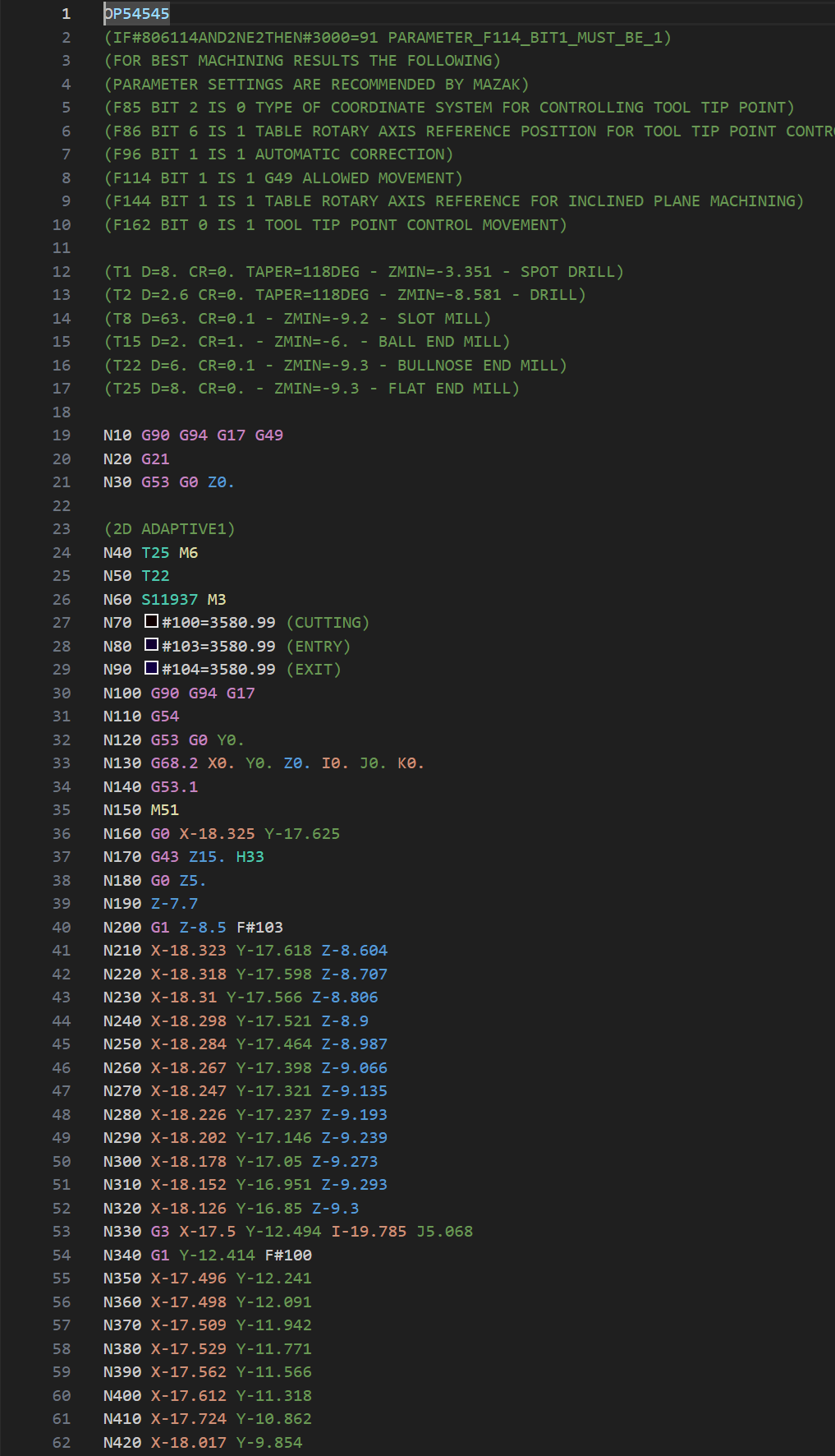 Specjalizujemy się w tworzeniu postprocesorów dopasowanych do maszyn Mazak oraz maszyn ze sterowaniem Heidenhain. Każdy projekt traktujemy indywidualnie, analizując potrzeby produkcji i dopasowując kod tak, by programy były czytelne, bezpieczne i gotowe do użycia na hali. Jesteśmy też otwarci na nowe sterowania i wyzwania.